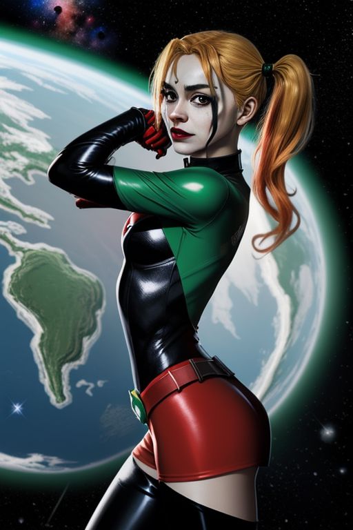 Harley Quinn, Green Lantern, Anime Style, outer space
