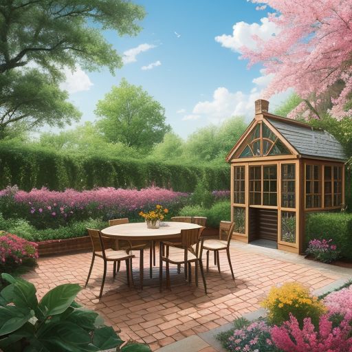 spring house,blue,yellow,red,white,pink,sky,water,flower,light,window,soil,fire,frat,tree,grass,brick,flatland,garden,pool,spring,clear,chair,,bed,room,glass,new,rooftop handrail,flat rooftop, veranda,fantasy, magic, novelty,cloud,vivid.wide,simple,rug,noon,gold,gem
