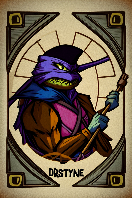 (image in dst style:1.2), messy lines, dark lines, donatello, tmnt, (masterpiece, extremely detailed, 4k, 8k, 16k, highres:1.3) <lora:dontstarve_dst:1> <lora:90sTMNTDonatello_v10Alpha:0.8>