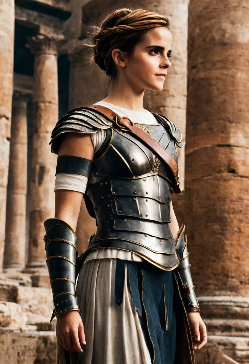 Emma Watson, full body, woman gladiator, ancient rome, midrift