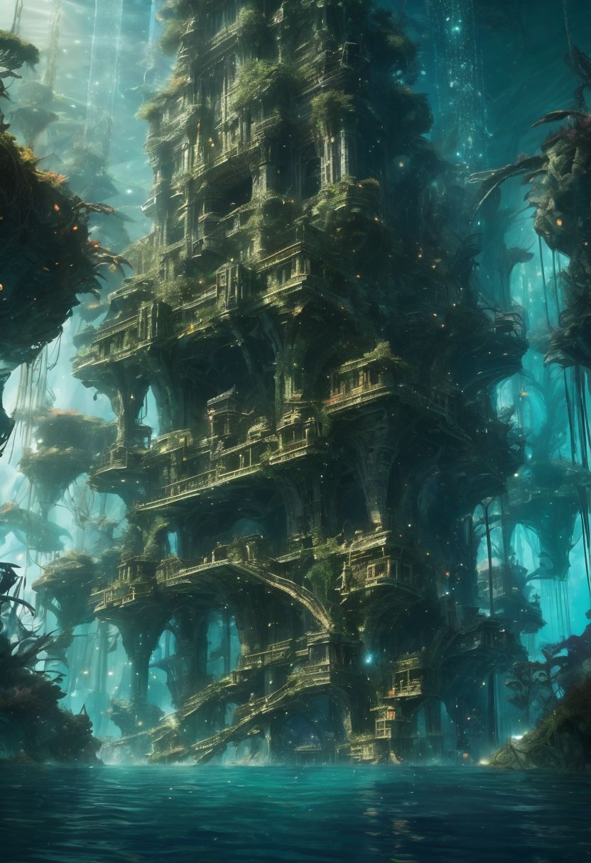 Imagine a universe where realms intertwine: Mythical Nightscapes: Moonlit forests teem with mystical creatures and ethereal constellations. High Fantasy Realms: Majestic castles overlook enchanted kingdoms where dragons soar and heroes embark on epic quests. Anime Worlds: Futuristic cities blend technology with magic, where characters with extraordinary abilities battle mechanical giants. Apocalyptic Visions: Ruined civilizations overgrown by nature harbor survivors seeking hope amid lost knowledge. Underwater Scenes: An aquatic civilization thrives in coral palaces, exploring bioluminescent depths. Craft a tale bridging these realms a hero's journey across starlit forests, bustling cities, desolate ruins, and underwater realms. Embrace the boundless possibilities of this multidimensional universe.