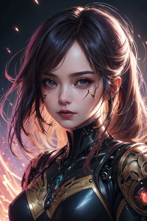 (masterpiece, high detail, best quality), sharp, smooth anime,digital portrait of a villain, intricate cybernetic armor, in the style of comics,, movie still, ultrawide, glowing lights, beautiful magical sparkles, vibrant whimsical colors <lora:ral-elctryzt:0.7>