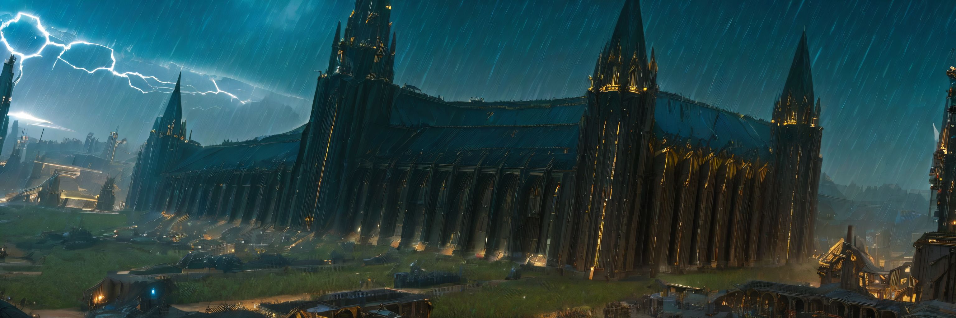 (warhammer 40k, wh40k10m, Imperium of Man location, background,, agri-world:1.5, complex gothic architecture, i, machinery,:1.5, wide crop fields gigantic granaries:2, multiple layers of construction, layer after layer of architecture, spire towers, reaching the sky), gothic temple BREAK (symbolism, iconism, statue, heraldry, Imperium of Man location, The Aquila, two-headed eagle, cranes:1.5, Brutalistic, Dystopian, grim, dark, thunder storm, clear sky), BREAK (view from orbit:2, gigantic:2,panorma:2, large scale:2) <lora:Wolvie_Style_wh40k10m_v1.0:1>