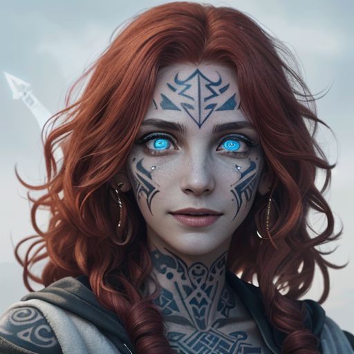 human female, (feminine:1.7), (beautiful face, detailed face:1.6), (beautiful eyes, detailed eyes:1.7), (looking at viewer, eye contact, intense:1.6), (smiling, open mouth:1.2), (long hair, red hair, curly hair:1.3), , ((masterpiece, best quality, high resolution, realistic, best quality,)), photo realistic, Perfect Face, (detailed face). <lora:GoodHands-vanilla:0.6> <lora:add-detail-xl:0.8>, mage, white military coat, dagger, rune dagger, glowing runes, , (((runic tattoos))), ((face tattoos)), glowing tattoos, stone tower in the background