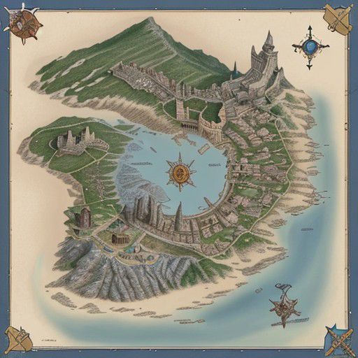 top down view of an rpg map of a seaside port city and fortress, expert cartography, D&D fantasy,docks and ships ,east of a mountain ridge, easten shore of the continent