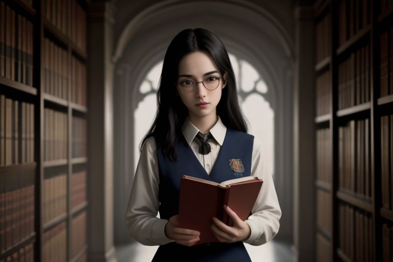 8k,1girl as a real-life student wizard, (wearing Hogwarts Academy uniforms) glasses, finishing a ritual summoning in an old Library