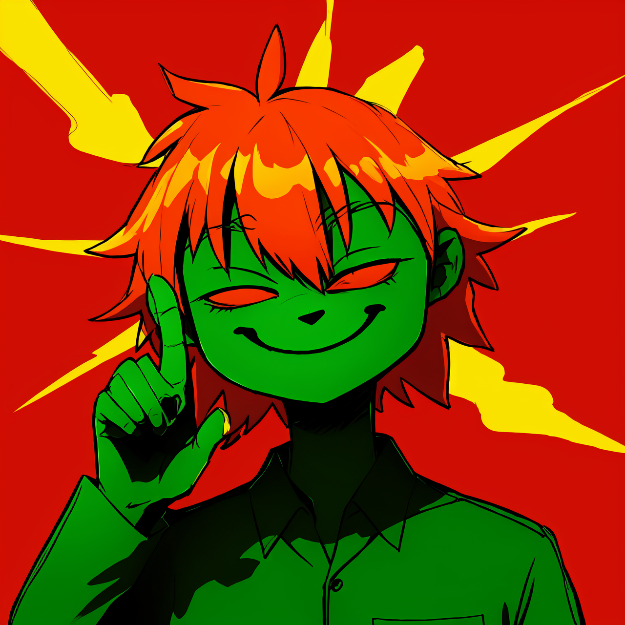 <lora:EyestrainColors:0.9>, EyestrainColors, drawing of a girl with a fake smile,, 90s ((1990)), sketch, ink, orange, red background, green skin and hair, shadow silhouette, nuclear explosion, peace sign