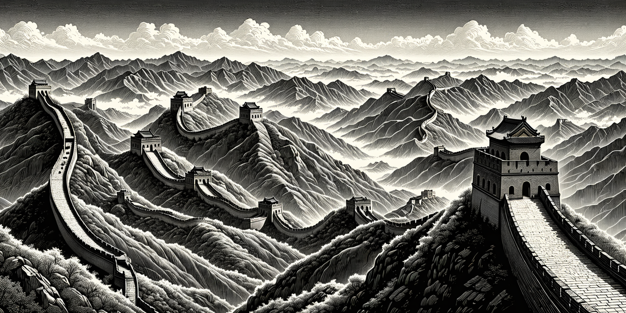 The Great Wall is made up of continuous detailed lines winding and lengthening,((digital carving style)),masterpiece,high quality,colorful,beautiful,<lora:changcheng_V0-000002:0.6>,bigc,digital engraving,Mezzotint,