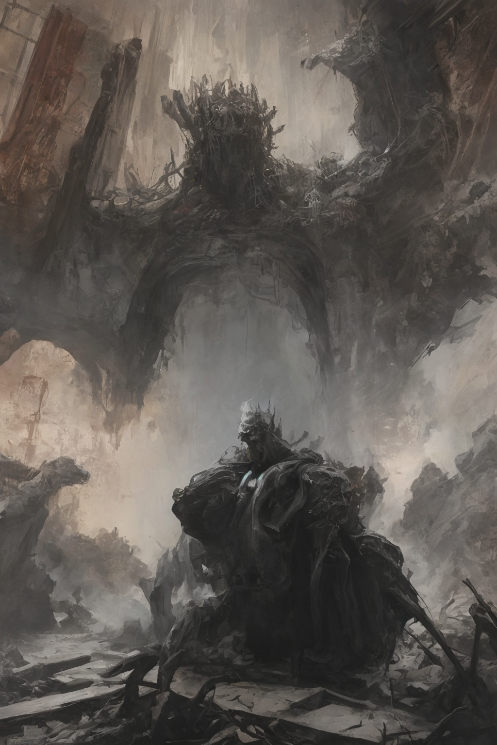 by Eugene Galien-Laloue and Takeshi Obata,polarized,An ancient Building,filled with forbidden knowledge,where scholars and sorcerers search for lost spells among the dusty tomes. Ghostly guardians patrol the aisles,ready to protect the secrets within. world in the style of the decaying empire of Würstreich,dark magic and grotesque creatures abound,inspired by Sean Aaberg's punk aesthetic,dark fantasy world combines grim landscapes with vibrant,colorful art,heroes skirmish monstrous foes in a setting where rebellion,decay,and mysticism intertwine,crafting a unique,immersive vibe,hyper detailed,professional poster art,bold lines,award winning,trending on ArtStation,(intricate details, masterpiece, best quality:1.4),looking at viewer,dynamic pose,in the style of nicola samori,(Use Dream Diffusion Secret Prompt). UHD,absurdres,