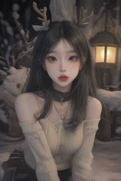1girl,christmas,bare shoulders,antlers,(cowboy shot close-up),standing,exquisite eyes,night,cityscape,snowing,striped stockings,elegant posture,<lora:Christmas_20231212224057-000008:0.7>,(an extremely delicate and beautiful),(best quality),((masterpiece)),intricate detail,(masterpiece, high quality, best quality), big breasts