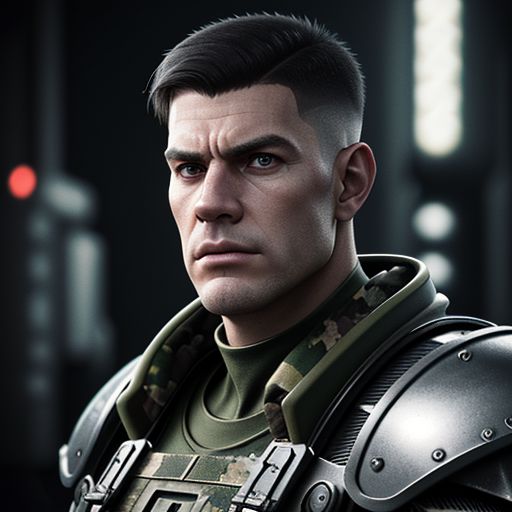 perfect face, photo realistic, cyberpunk film, raw photo of man, 3/4, soldier, armor, camouflage, tough guy, chiselled jaw, plasma riffle, deep night, dark room, high quality, detailed skin, clear face, clean face detailed hair, military hair cut, cinema shot, hdr, sharp focus,