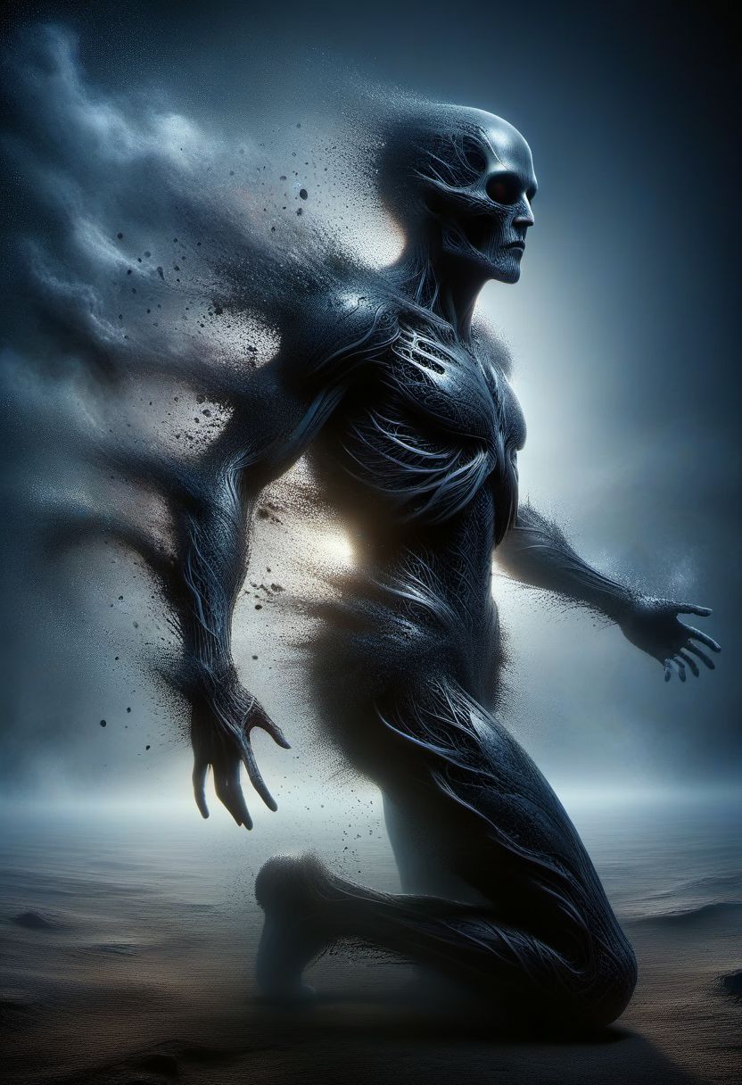 Visual story of a man elevating to a higher form as described in the lyrics below. See my shadow changing, Stretching up and over me, Soften this old armor, Hoping I can clear the way by, Stepping through my shadow, Coming out the other side, Step into the shadow, Forty six and two are just ahead of me, Klang, Klang, Klang, Klang, Klang, Klang, Klang, Klang, ral-ertmsphr, ral-dissolve, DonMX3n0XL