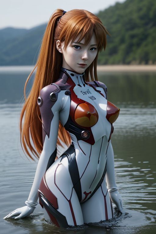 Asuka Langley from Evangelion in lake, high detailed, cinematic, no body disfigurement,