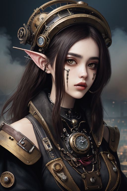 score_9, scopre_8, score_7_up,fae automaton, 1girl, woman, 25 years old, portrait, steampunk, metal face, (very cute), (very beatiful), metal skin, low cut, big breasts, smog, steampunk industreal, background