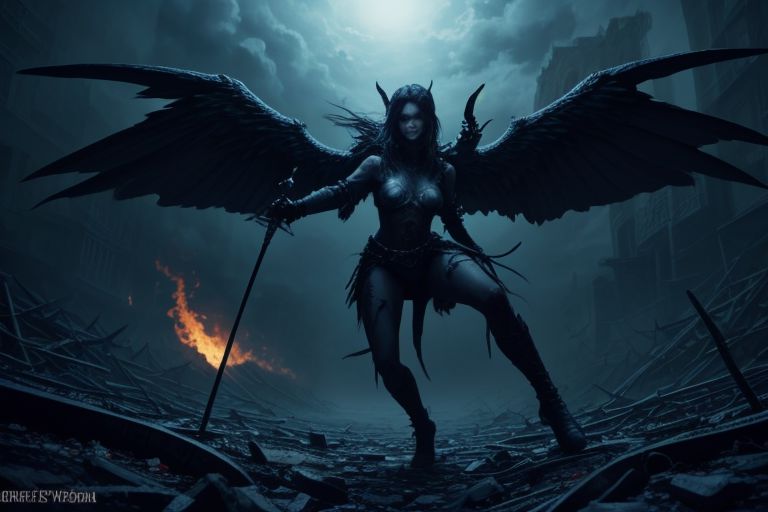 score_9, score_8_up, score_7_up, rating_explicit, intricate detail, chromatic aberration, realistic, detailed face, detailed legs, correct anatomy score_9,score_8_up,score_7_up,score_6_up,ciprealism, (masterpiece:1.2, best quality, ridiculous resolution, ultra detailed ),realistic ,painting,female angel (wings), (flaming sword in hand), ,extremely delicate and beautiful face, detailed face, realistic skin, (pale skin), action ((angel swings sword at demon)) 1 demon ((huge)), ((looks like an eerie spawn of hell)) (size difference: 1.4), divine bright night: 1.2), battle between good and evil, ((apocalyptic picture)), perspective, far, near, side, top, bottom