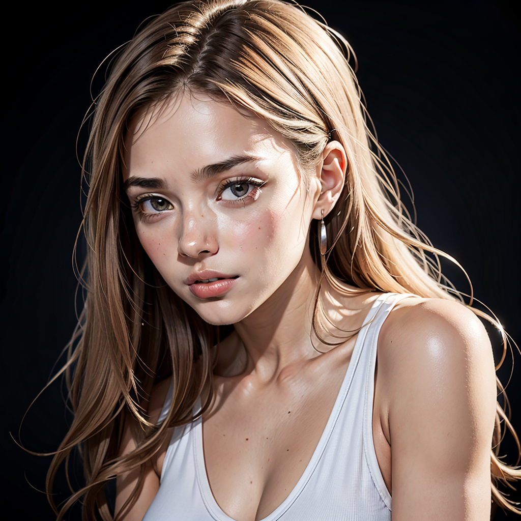 Portrait, A Woman, look at viewer, long hair, tank top, white background