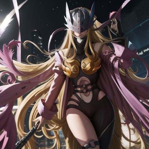 beelstarmon, 1girl, bangs, breasts, , gloves, large_breasts,,stand,walk,trample,fight,hit,mother, sexletterboxed, long_hair, parted_bangs,, blonde hair, ribbed_sleeves, solo, mask, winter-suit, boots,young,very_long_hair,<lora:beelstarmon-000012:1>