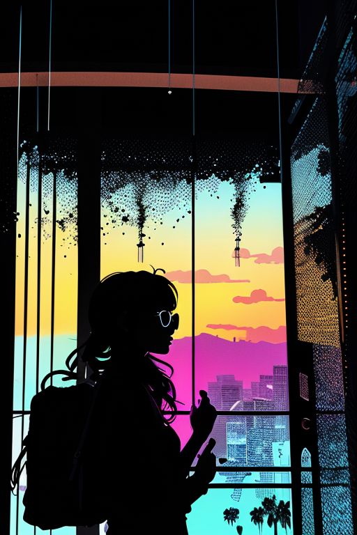 high quality illustration of a cocky confident stunningly beautiful woman, vibrant neon colors, cool sunglasses, silhouette, illustration, looking at viewer, lofi, hot weather, Los Angeles