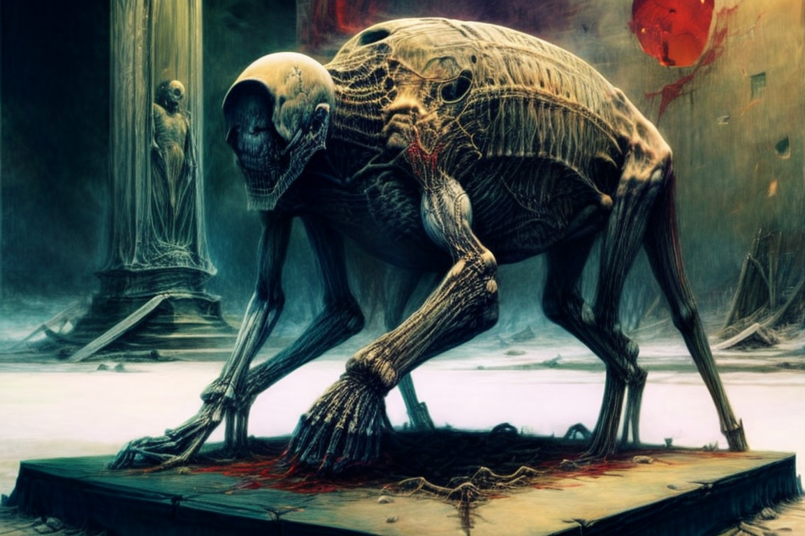 Death knight walking in cemetery, under a blood moon, stacked tombstones, chapel hill, chapel mountain, cloud, fog, dead tree, stone steps, hell, solemn, majestic, best quality, highly detailed, masterpiece, by Zdzislaw Beksinski, <lora:03style_Zdzislaw_Beksinski_ArtStyle_selected:0.8>, <lora:02adjust_more_details:2>. <lora:03style_by_zdzislaw_beksinski_finetuned:0.8>, <lora:000_chen:1>