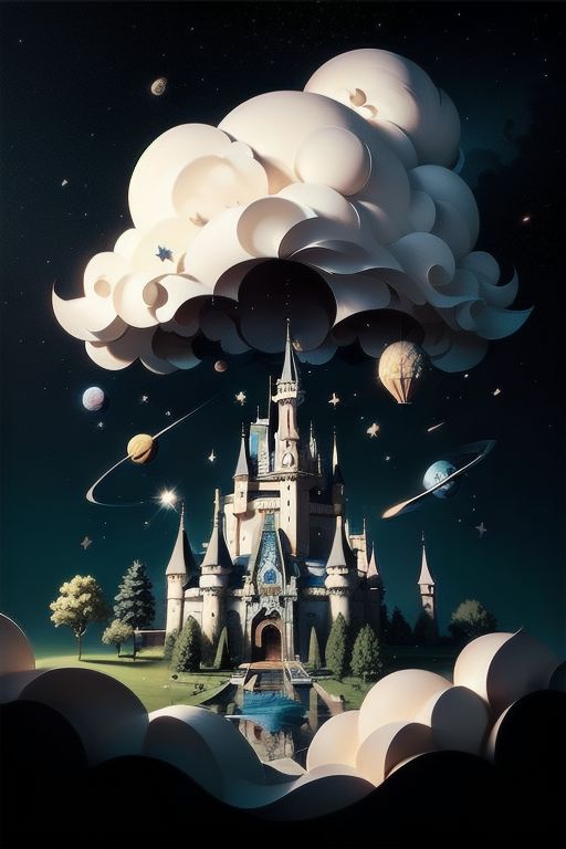 fluffy, floating, clouds, sky, stars, space , Castle