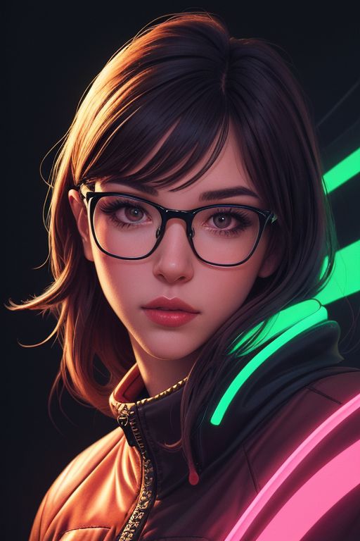 high quality illustration of a cocky confident stunningly beautiful woman, glasses, perfect skin, portrait, vibrant neon colors, boots, silhouette, illustration, looking at viewer, lofi,