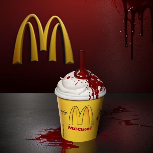 8k, realistic, masterpiece, McDonald's, burger and fries with red blood, blood dripping down the side of cup, blood splattered around everywhere, red blood on everything, blood slashing, blood airborne bloody hand prints, gory scene, background McDonald's restaurant
