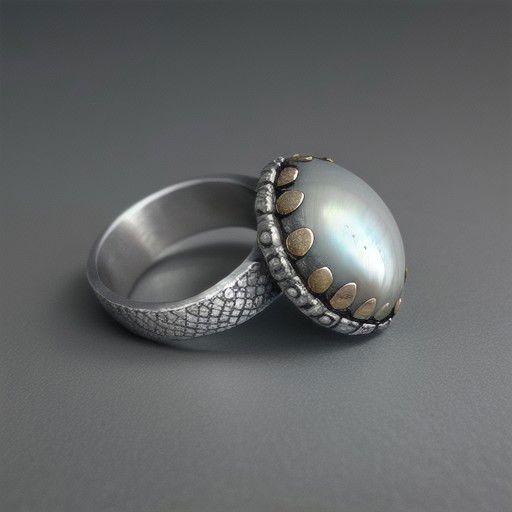 Game prop design, ring, metal texture, still life, simple background, no humans, gray background, Precious metal, sea shell picture, set Gems<lora:Game rings:1>,