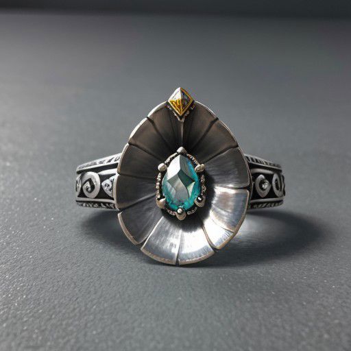 Game prop design, ring, metal texture, still life, simple background, no humans, gray background, Precious metal, sea shell picture, set Gems<lora:Game rings:1>,