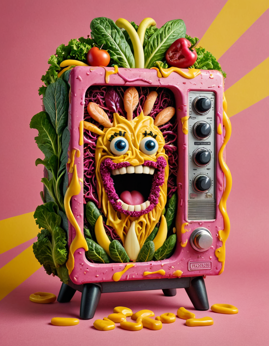 rendered in corel art, Cathode tube, dark yellow paint splotches, ("So call me maybe.":1.2) , it is Literal, it is dressed in ral-sld, its ral-sld is Pink, It has Scales print on it, Kodak Ektar, Knightcore, triadic colors, four colors, moody lighting, Matt Groening, "Don't stop believin', hold on to that feeling.", <lora:ral-sld:0.7> made out of ral-sld, aesthetic, highly color focused, very, full color