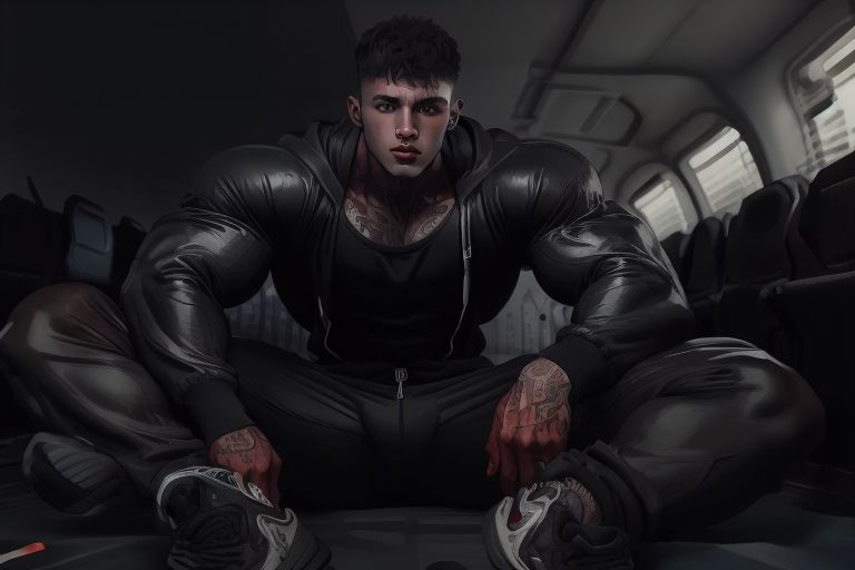 Syahnk,1man, muscular male, (photo realistic:1.5), wide angle, long shot, (skinny, young male:1.5), scally, chav, proll, smirk, tattoos, open bomber jacket, sweatpants, latexai_black sneakers, london bus, (extremely intricate:1.2), (exquisitely detailed skin), dark lighting, dark colors, mystery, atmospheric, ultra high res, 8k uhd, intricate details, best face, best eyes, best hands, best quality, delicate, detailed face, detailed eyes, masterpiece, film grain, ChavAlpha, (Dark-skinned male), skinny, BrutalMass