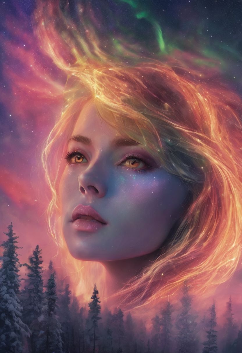 A detailed photo of an aurora borealis that has the shape of a woman's face, the supernatural style, the realistic style, the quality and the image making an infinite ultra-high definition, the infinite detail of the image, the infinite realistic rendering, the realistic overall RTX lighting, the infinite special effect