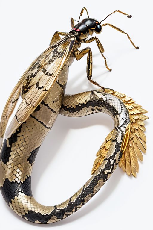 (snake insect gold wings:1.5), (illustration on white background:1.5), forest, drawing in anime style,