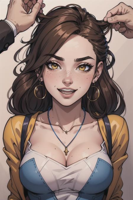 pale skin, ash white hair, grey coloured eyes, happy, coloured, perfect anatomy, mascara, narrow face, long hair, red lipstick, 27 years old, fine eyebrows, dangling red earings, girl