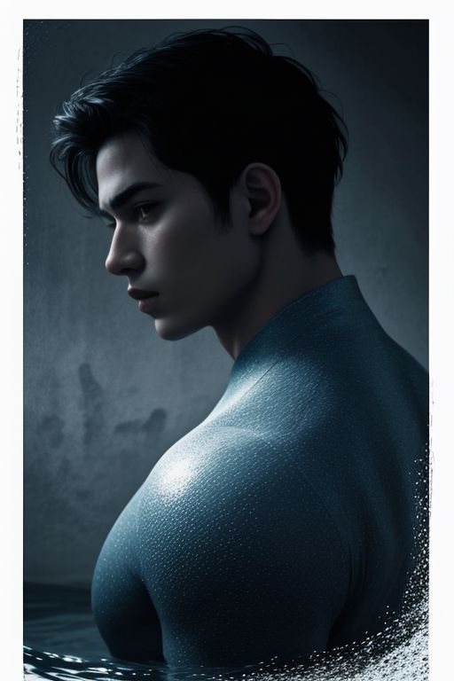 male mermaid, face focus, facing away from viewer, black aesthetic