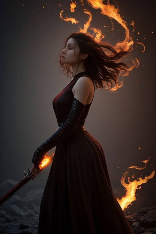 Capture the intensity as a woman stands tall amidst a dynamic display of colors, representing the fierce energy of Mars. Highlight her assertiveness, courage, and passion, channeling the martial spirit in her actions and presence.Fiery Passion