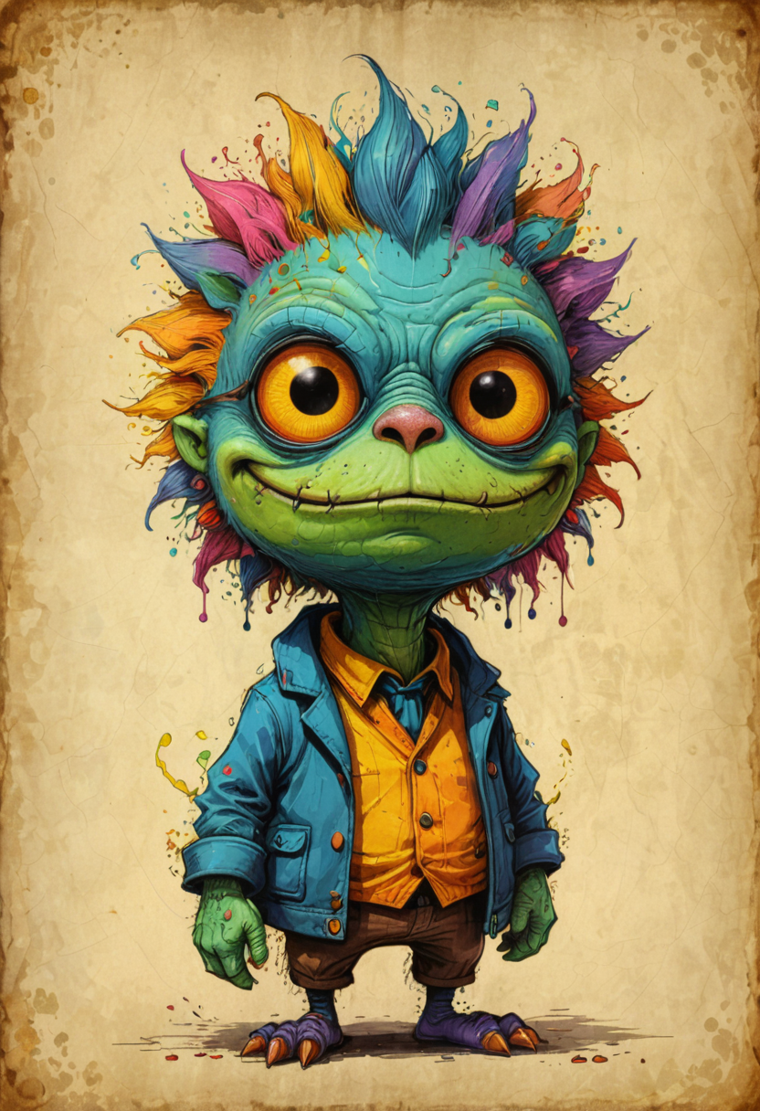 cute Beatnik Villainous monster, technical colored drawing art style, precise and clarity, mixed art media, warm colors, vintage<lora:xl_more_art-full_v1:0.8> <lora:detailed_notrigger:0.8>