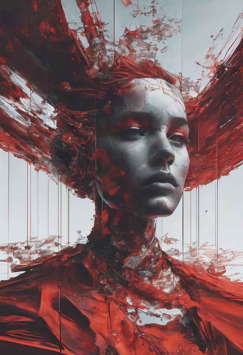 (((naturally interacting with the environment:1.5))),(((seamless:1.5))),((strong environmental light)),((hard shadows)),(merge realms of the extreme surreal and the toxic punk in a tapestry of dualities),enigmatic beings with ethereal silhouettes,digital dreamscape.Illuminate the scene with the pulse of a celestial bloom,(casting hues that bridge both cosmic and cybernetic realms).(Blend brushstrokes harmoniously),fusing elements of traditional artistry with glitched fragments of a pixelated mosaic.Embrace asymmetry,where the organic and the synthetic collide in a dynamic composition.(Infuse a shifting timeless vibrant palette).Integrate augmented reality surprises.by Lekrot.fusion of art styles,transcend boundaries and conjure a visual symphony that harmonizes the present elements.((highest resolution)),(best quality),((extremely sharp focus)),(((red:3))) <lora:add-detail-xl:1> <lora:MJ52:0.5>