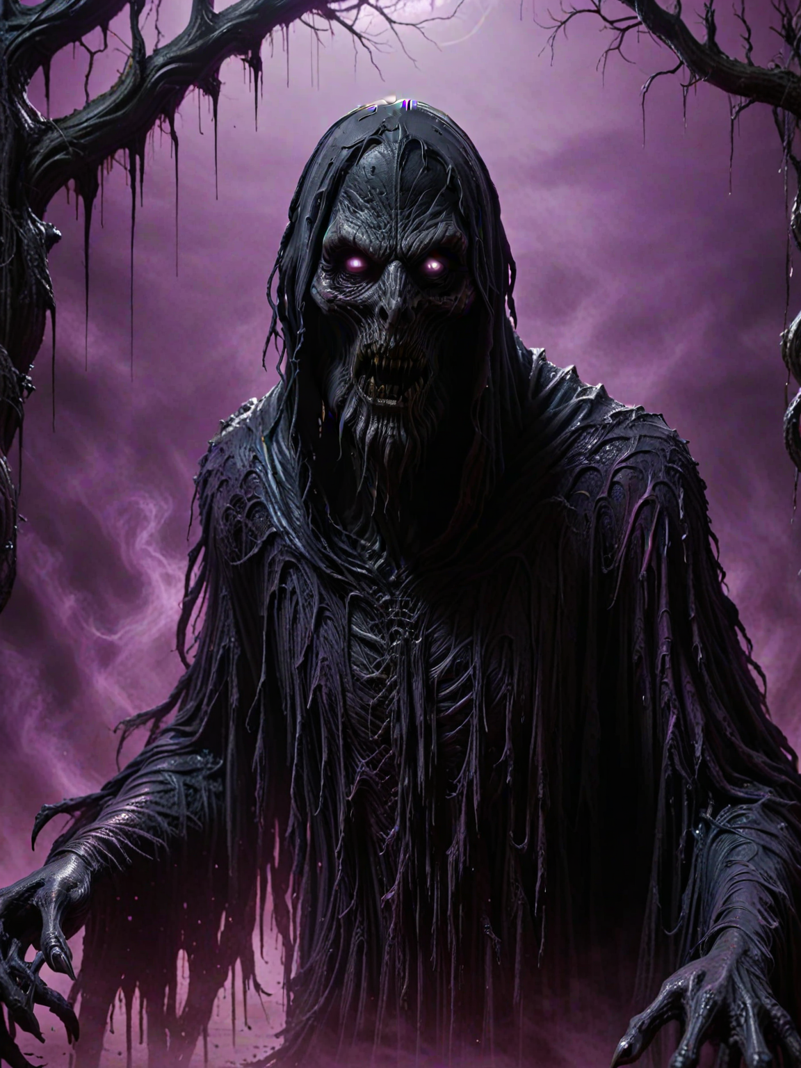 Impactful paint of dementor. Dark Lavender Pink background, evil expression. Dark Depressive Horror. Highly detailed, 8k, sharp, professional, clear, high contrast, high saturated, vivid deep blacks, crystal clear. ral-mythcr, <lora:ral-mythcr:1>