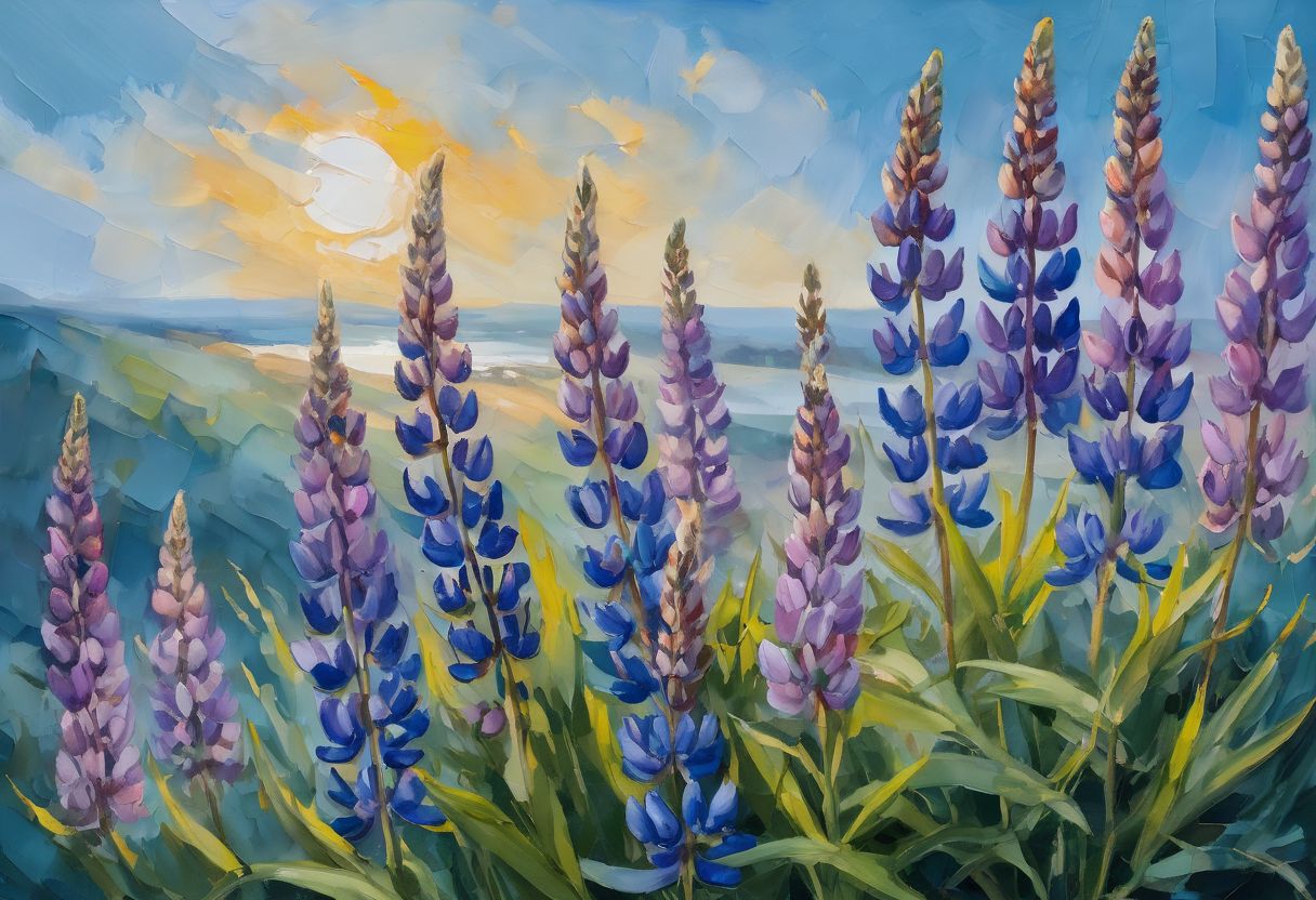 Lupine, flowers, blue background, oil painting, rough stroke, an image with rich texture and thick brushstrokes characteristic of an oil painting, Emphasize the thick brushstrokes, blending of colors, and the play of shadows<lora:xl_more_art-full_v1:0.3> <lora:oil_SDXL_v1.0:0.6>