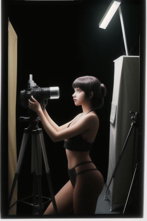 8k, high resolution, masterpiece, woman with cleavage working with a photo enlarger, in a dark room developing photographs, photo laboratory ((always medium shot from the side)), you can see how the Durt model manipulates the M 301 enlarger ((all developed positives are always detailed)), ((photo enlarger)), developing trays, very dark environment, only lights for developing photographs, old photo lab environment, photographic era,