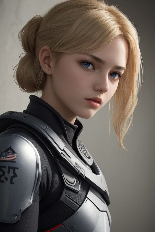 wide-angle shot, (1girl, 18y, young, short, cute, beautiful face, long blonde hair tied up, blue eyes, light tan skin, small breasts), black-ops future military exo armor and black face rebreather