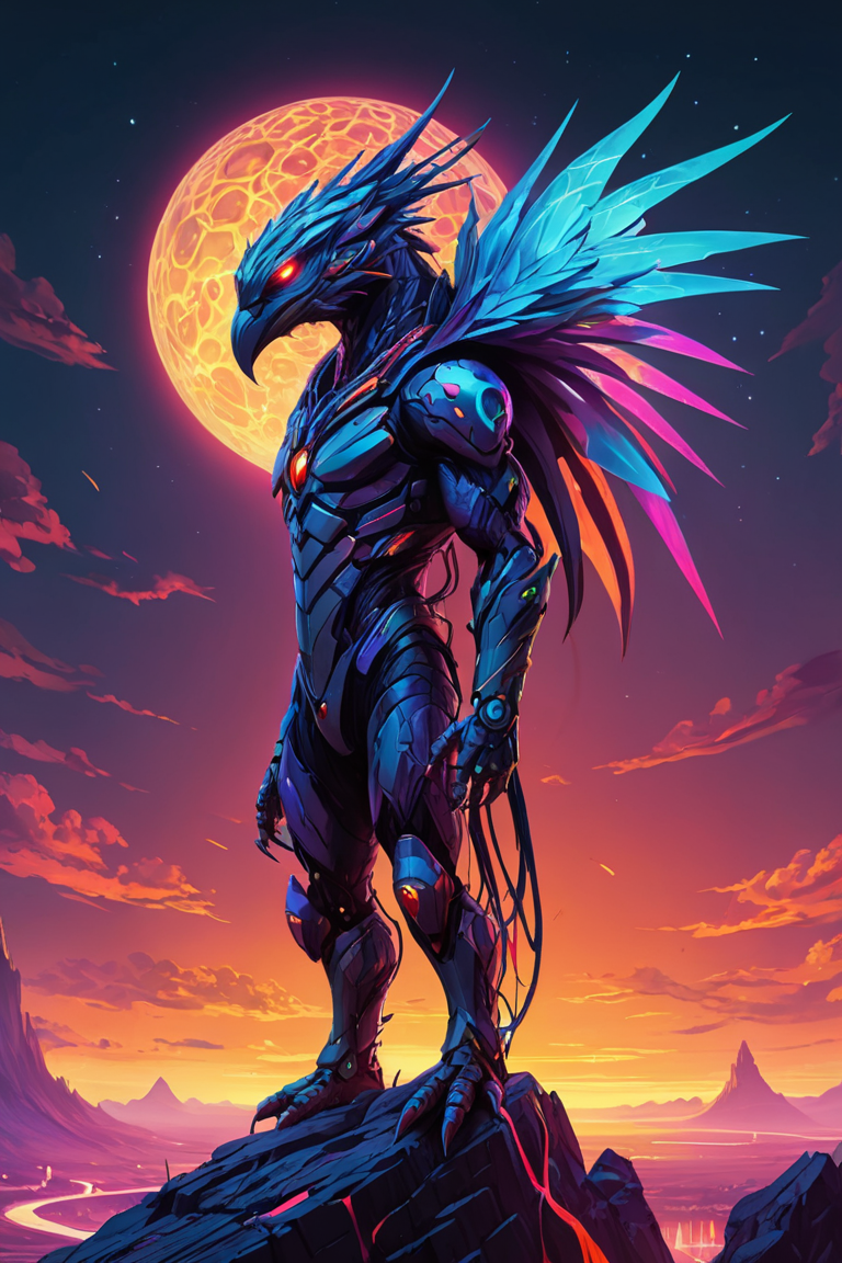 ethereal fantasy concept art of Neon noir famous artwork by (archan nair:1.4), (dramatic scene:1.4), (fractal art:0.7), fantasy style, dynamic angle, in the twilight hours on planet slurmsphere iv a (fantastical creature known as stone-skinned scudwhistler:1.2) with its zymgroggled (shimmering scales:1.4) roams the colorful jagged rock formations snorpeling the (surreal looking plains:1.2), this (wondrous creature:1.4) blends almost seamlessly with its surreal erbelgunk . Cyberpunk, dark, rainy streets, neon signs, high contrast, low light, vibrant, highly detailed . magnificent, celestial, ethereal, painterly, epic, majestic, magical, fantasy art, cover art, dreamy