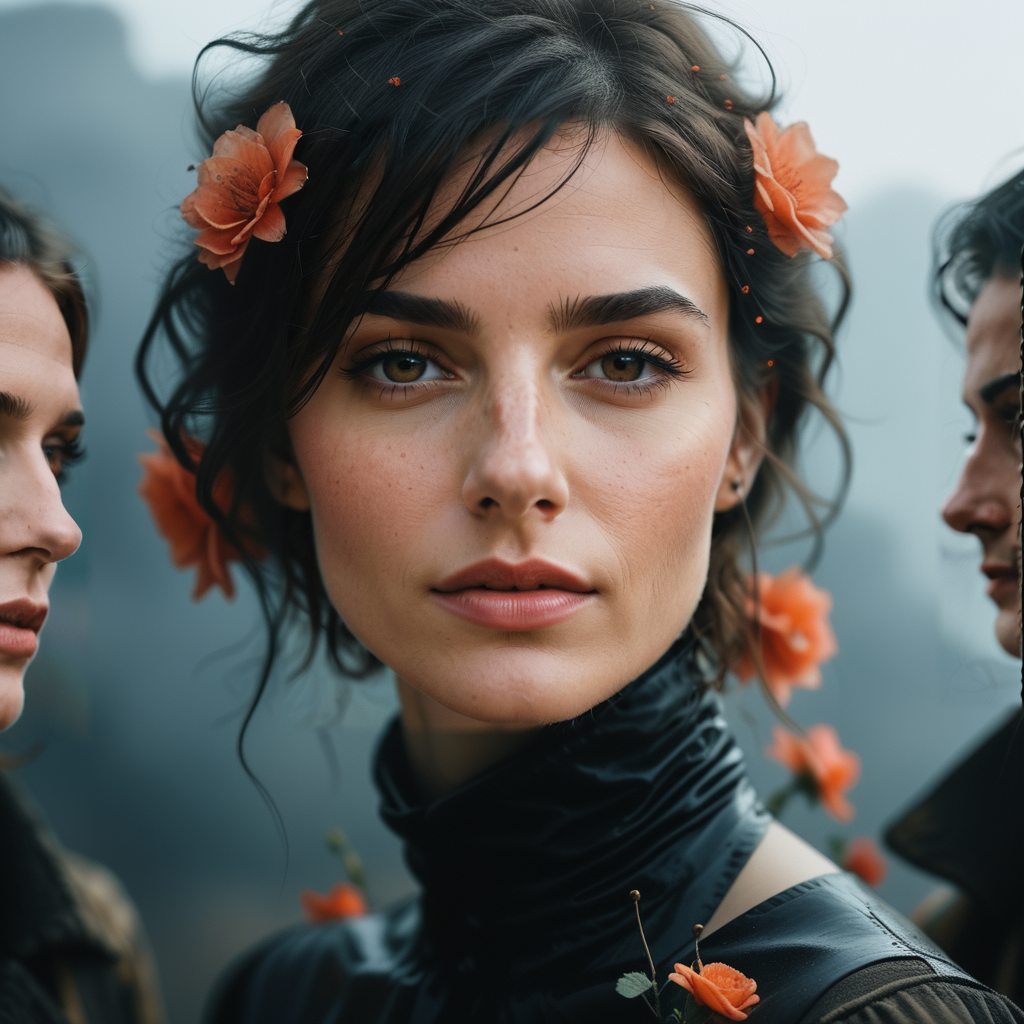 (dark mood masterpiece Photography by Mario Giacomelli:1.2), scary mystic art, featuring creepy and weird characters, haunting figuratism, and a misty atmosphere, all in the expressive style of post-apocalyptic, gothic dark, and macabre themes,, Film grain, cinematic film still, highly detailed, high budget, cinemascope, moody, epic, OverallDetail, gorgeous, 2000s vintage RAW photo, photorealistic, candid camera, color graded cinematic, eye catchlights, atmospheric lighting, imperfections, natural, shallow dof,style-paintmagic Amidst holographically-illuminated ruins, spectral entities with grotesque visages wandered under neon red and black symbols, their forms distorted by haunting figuratism against a backdrop of digital code and misty desolation in an artwork marrying post-apocalyptic gloom and macabre detail, high-definition digital art, surreal style, futuristic elements, geometric patterns, clear sky, abstract red flowers, digital glitches, artistic composition, masterpiece, best quality, highres