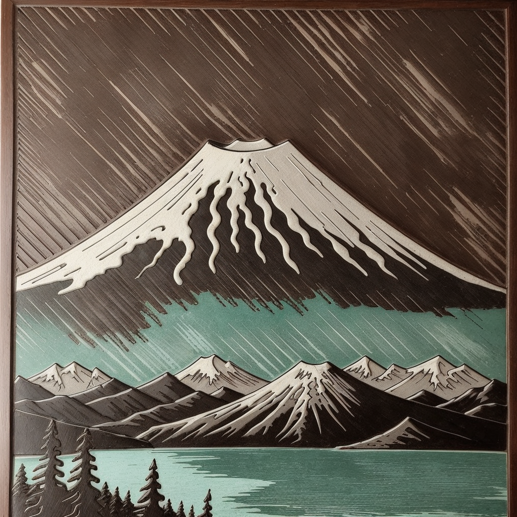 woodcut of mount fuji by Coffee_Patina <lora:Coffee_Patina:1>