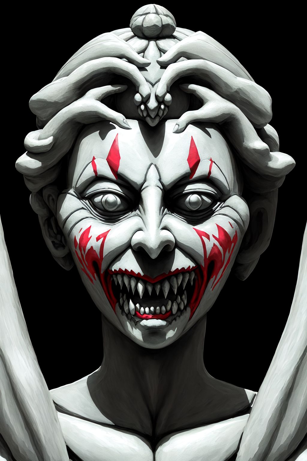 A picture of an evil stone clown drwhoweepingangel <lora:sd15-drwhoweepingangel-lora:1.0>, Very detailed, clean, high quality, sharp image