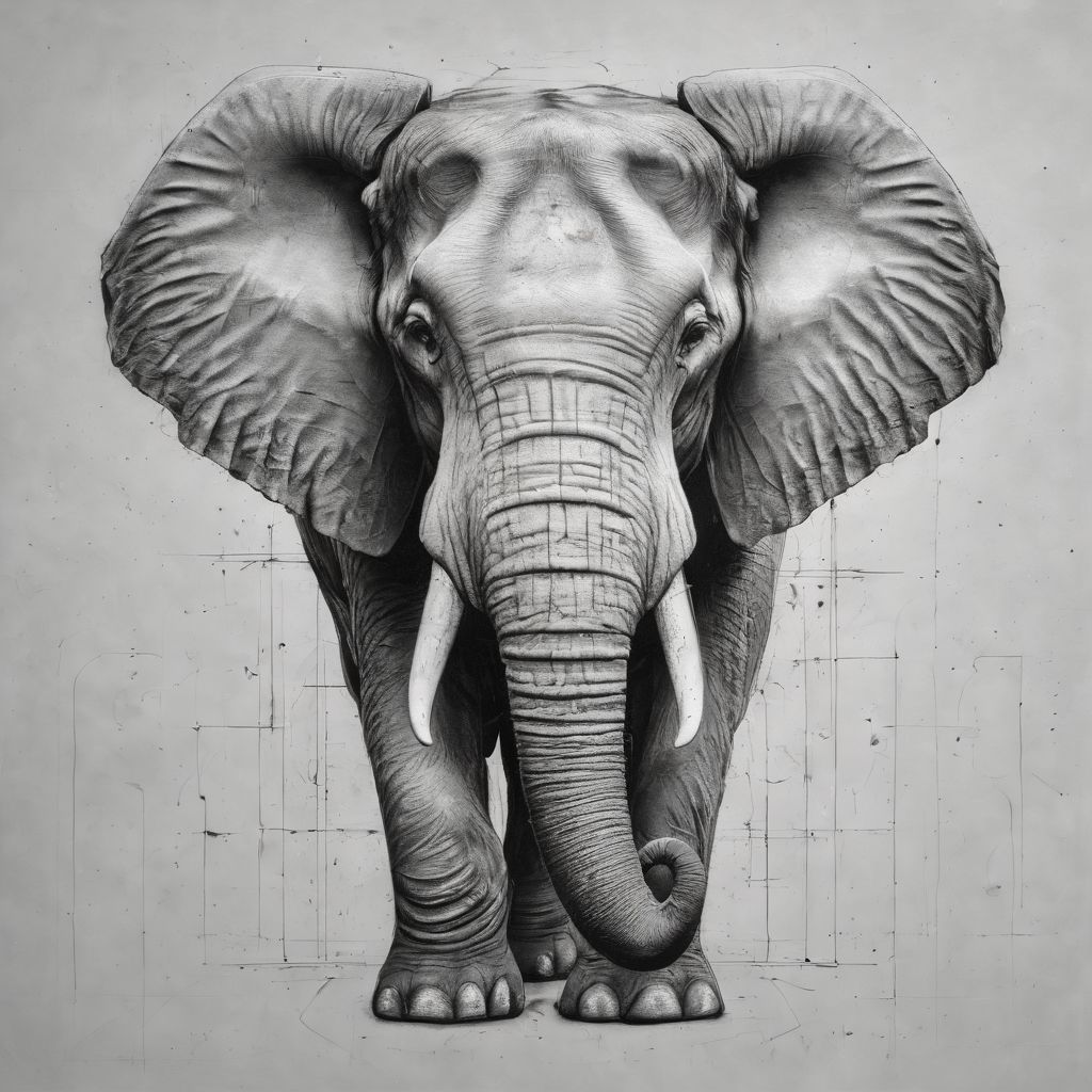 grey elephant, pencil drawing style, black and white perfect elephant face, round eye, perfect anatomy, (goat's pupils:1.4), (perfect eyes:1.2), <lora:difConsistency_detail:0.2>, detailed eyes, <lora:add_detail:0.4>, <lora:hd_helper_v1:0.8>, <lora:rMadArt3_NoiseOffset:1>, <lora:add_sharpness:0.8>, <lora:SDXLrender_v2.0:0.8>, <lora:skin_slider_v10:0.6>,