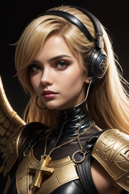 , solo, portrait of goodisis, goodnes ornate, egypt, energy, aura, dust, debris, Face looking, tanned skin, women, Ankh Cross, wings, ankh, Black Eyeliner blond cyber punk