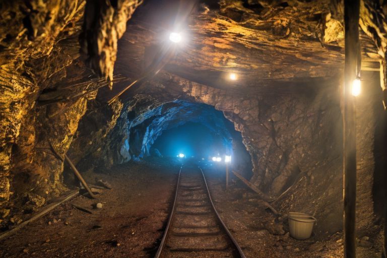 RAW photo, (masterpiece:1.3), subsurface scattering, heavy shadow, (high quality:1.4), (intricate, high detail:1.2), professional photography, HDR, High Dynamic Range, realistic, ultra realistic, photorealistic, high resolution, film photography, ambient lighting, atmospheric effects, <lora:detail_slider_v4:2>, OverallDetail, a huge cave, medieval mine, tracks, <lora:UndergroundMine:1>, epiCPhoto