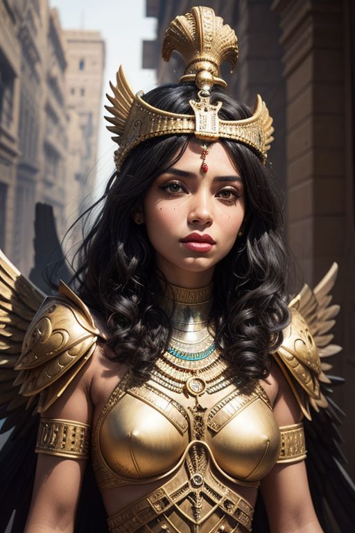 , solo, portrait of goodisis, goodnes ornate, egypt, energy, aura, dust, debris, Face looking, tanned skin, women, Ankh Cross, wings, ankh, Black Eyeliner Egyptian princess