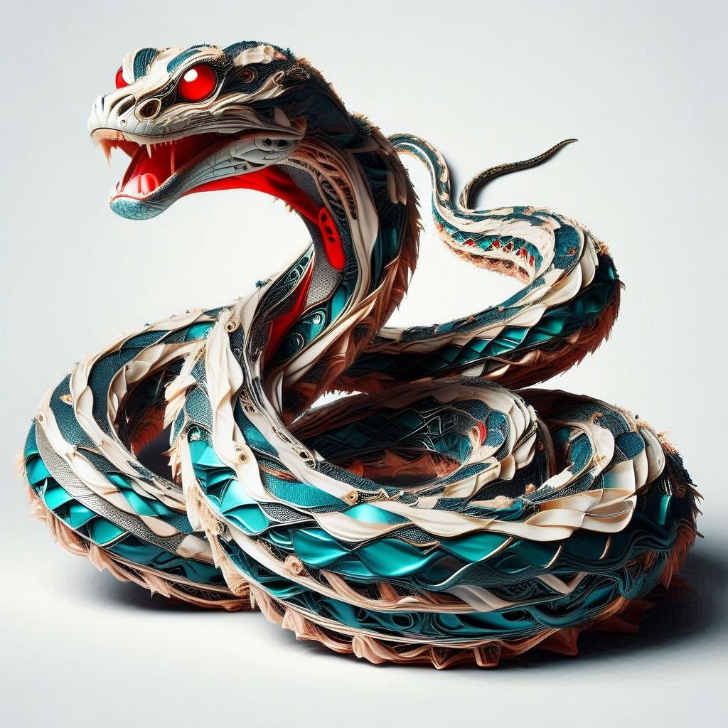 snake,fabric, futuristic, glowing color inside, hollow inside, glossy